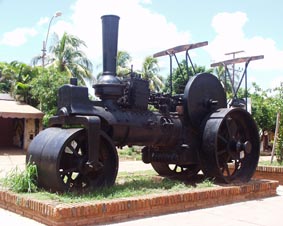 1. コンセプシオンでの教会風景パラグアイ河沿いの重要な港町・コンセプシオンでのスナップ。 [拡大画像(x5108.jpg)]/保存画像 [拡大画像(x5109.jpg)] [拡大画像(x5110.jpg)] 2. ドイツ製地ならし機(planadora)&ミニ蒸気機関車 ![]() ・ コンセプシオン市が1913年に購入したというドイツ製ロードローラー(製造会社はB. Ruthemeyer Soest)。 街の目抜き通りに展示されている。蒸気動力か?? [拡大画像(x5111.jpg)] ・ パラグアイ北部地域では最初の蒸気機関車。 コンセプシオンを発着駅にして、1909年から1959年まで活躍したとされる。 街の目抜き通りに展示されている。 [拡大画像(x5112.jpg)][説明書き(x5113.jpg)] 3&4. 市場に見るパラグアイの香と色/家路につく農夫 ![]() ・ 露天商がところ狭しと並ぶような、コンセプシオンの街中にある市場の風景。果物屋、草履屋などなど、何でもあり。 ・ 何てことない風景かもしれないが、パラグアイらしき生活の香と色に満ち溢れている。 [拡大画像(x5114.jpg)] コンセプシオンの郊外にて。コンセプシオンの市場に農作物を売っての帰りであろうか。のんびりと家路につく農夫たち。 [拡大画像(1)(x5115.jpg)][拡大画像(2)(x5116.jpg)] 5. これこそ「山のある風景」! 1 2![]() 3 4![]() パラグアイ国土は、平坦そのものか、なだらかな丘陵地形ばかりである。 なだらかな丘陵に広がる広大な放牧地ばかりを目にしていると、たまには海の地平線や山らしき山を見たくなる。 パラグアイにもその山らしき山々の風景があった。 コンセプシオンからブラジルとの国境の街ペドロ・フアン・カバジェーロに向けて小一時間も行けば、山々の風景 (山岳風景とはいかないが)に見とれながらのドライブを楽しむことができる。 写真はCerro Membyのいう山(日本語でいえば「Membyの丘」)。 1[拡大画像(x5117.jpg)][拡大画像(x5120.jpg)][拡大画像(x5119.jpg)][拡大画像(x5118.jpg)] 2[拡大画像(x5121.jpg)] 3[拡大画像(x5122.jpg)] 4[拡大画像(x5123.jpg)] 6. セロ・コラ国立公園 (Parque Nacional Cerro Corá) のモニュメント セロ・コラはパラグアイの歴史に名を残す戦場(パラグアイ・アルゼンチン・ブラジルとの3国戦争)である。ロペス大統領はここで 最後まで激闘し戦死した。 モニュメントだけがひときわ目立つ。 [拡大画像(x5130.jpg)][拡大画像(x5131.jpg)][拡大画像(x5132.jpg)][拡大画像(x5133.jpg)][拡大画像(x5134.jpg)] 7. ビーチサッカー: ブラジル・パラグアイの国境の町「Pedro Juan Caballero」にて ![]() [拡大画像(x5124.jpg)][拡大画像(x5125.jpg)][拡大画像(x5126.jpg)] [拡大画像(x5127.jpg・x5128.jpg)] 8. ブラジル・パラグアイ国境線は大通りの中央分離帯(Pedro Juan Caballeroにて) ![]() 「Pedro Juan Caballero」はパラグアイとブラジルとの国境の街。街を貫く一本の目抜き通りの中央分離帯がいわば国境線。 街の目抜き通りの真ん中に立つ、「来パラグアイ歓迎」標識。向こう側がパラグアイ側、手前がブラジル側。 市民も観光客も、無造作に、何のコントロールも受けず、自由自在に往来する。観光客にとってはこの標識でもって国境線の存在を 意識させられる。人々が仲良く共存する、不思議な国境の街である。 [拡大画像(x5129.jpg)] |