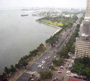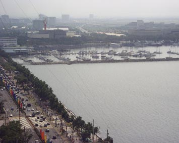 2. 眼下にマニラ湾とロハス・ブルバード。画面上部遠方にマニラ港が見える。 [拡大画像(x8875.jpg)]