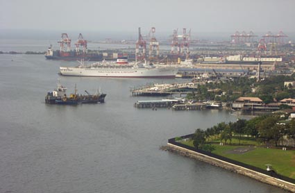3. マニラ港の外航・内航船の埠頭、コンテナヤードとガントリークレーンが見える。 [拡大画像(x8876.jpg)]