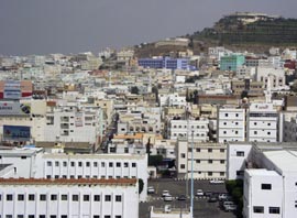 1. アブハから、紅海側へはこんな急峻で岩だらけの山を一気に駆け下る。 [画像(x8844.jpg)] アブハの都市風景