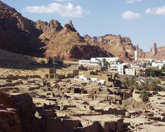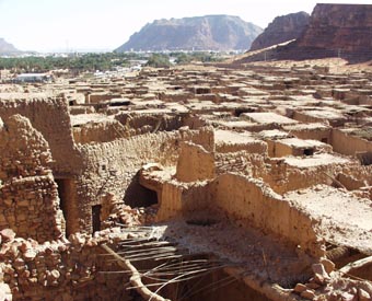 かつて何十年か前までは、このアル・ウラの地元の人々が住んでいた伝統的な家である。 だが、住民たちは政府の指示、指導で近くに建てられた近代的な家々に引越したという。 日干し煉瓦を積み上げ、さらに壁に泥を塗ったものである。 梁には椰子の木々が利用されている。 これが、サウジアラビアにおけるこれまでの伝統的家屋の基本構造であったといえる。