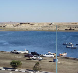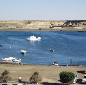 アル・ワッジにはこのような小さな入り江がある。 ここから数100kmも紅海を北上すれば、シナイ半島東側にあるアカバ湾の奥にあるヨルダンのアカバ、 イスラエルのエイラートにいたる。 その西側を北上すれば、スエズ運河の入り口の港町「スエズ」にいたる。