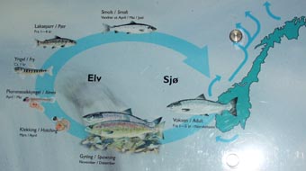 * Cycle: spawning, hatching, alevin, fry, parr, smolt, adult [拡大画像(x11539.jpg)]