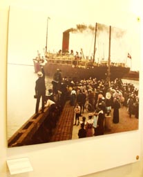10. 絵画: 移民たちのアメリカへの波止場旅立ち風景。船はおそらくThingvilla。 [拡大画像(x13075.jpg)]