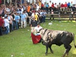 吹き鳴らし、ロディオを盛り上げる。飛び入り闘牛士が見せ場をつくる。闘牛場に踏み入れた観客は牛が向かってきたら