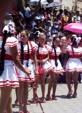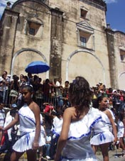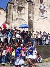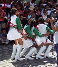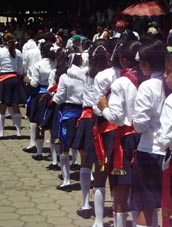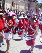 小さなフェスティバル、お祭り、パレード 首都マナグアの近郊の小さな田舎町ナンダイメ(Nandaime)。マナグアからは車で小1時間ほどの距離、隣国コスタリカ へ向かうパンアメリカン・ハイウェイ沿いにある。 そこで遭遇した市民あげてのフェスティバル。小学生から高校生まで、いろいろなグループがカラフルな衣装をまとい テンポのよいサンバにあわせてダンスを披露、大勢の市民で盛り上がった。さしずめ、ナンダイメの ミニ・カーニバル。[2008.9.15.Sunday] 1 2