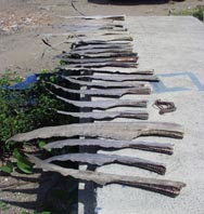 ノコギリザメの"ノコギリ"、その他鉄製ブイなどが展示されている。