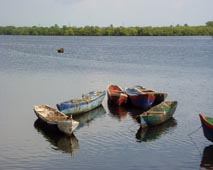 1. コリント港はこの漁村の家々・椰子の樹の向こう側にある。漁村から小型ボートをレンタルしてカルドン島