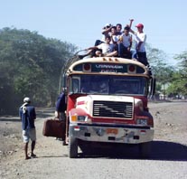 * ポトシから40-50km離れた最寄の都会チナンデガへの公共バス風景。ポトシの沿道で乗客を次々拾い上げて