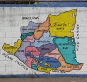 1. ニカラグアの2つの自治区(カリブ海側)と県(Departmento)を示している。県は地理的区分であり、日本のような