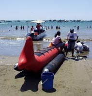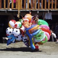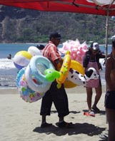 1. 浜辺でサングラス売りと浮き袋売りの一休みの会話。 浮き袋が体中に巻きつけているので売り人の姿は見えない。