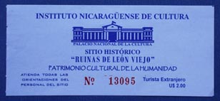 Sito Histórico "Ruinas de León Viejo" (レオン・ビエッホ遺跡) への入場券。 |