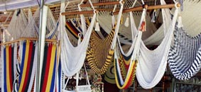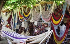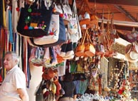 1~4. 民芸品のマーケットでは、ハンモック、風鈴飾り、帽子、皮製バッグ、刺繍をあしらった布製バッグ、