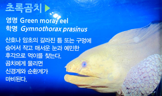 [魚]green moray eel, Gymnothorax prasinus [画像(z22005.jpg)][韓国・国立海洋博物館内の水族施設].
