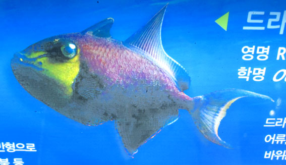 [魚]red-toothed triggerfish, Odonus niger [画像(z22019.jpg)][韓国・国立海洋博物館内の水族施設].