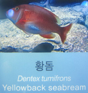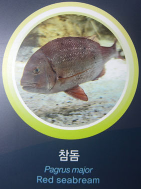 [魚]red porgy, Evynnis japonica [画像(z22047.jpg)][画像(p.jpg)][韓国・国立海洋博物館内の水族施設].