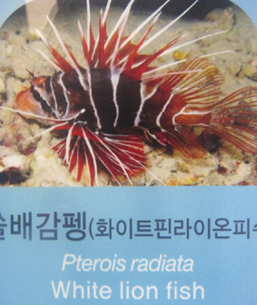 [魚]white lion fish, Pterois radiata [画像(z22052.jpg)][韓国・国立海洋博物館内の水族施設].