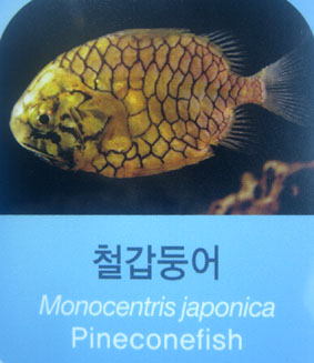 [魚]pineconefish, Monocentris japonica [画像(z22053.jpg)][韓国・国立海洋博物館内の水族施設].