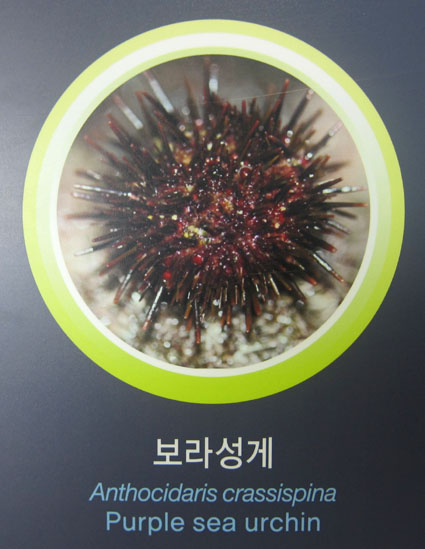 purple sea urchin, Anthocidaris crassispina [画像(z22056.jpg)][韓国・国立海洋博物館内の水族施設].