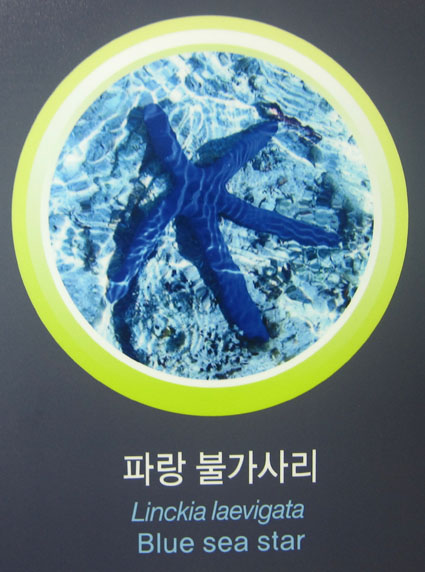 blue sea star, Linckia laevigata [画像(z22063.jpg)][韓国・国立海洋博物館内の水族施設].