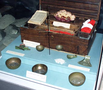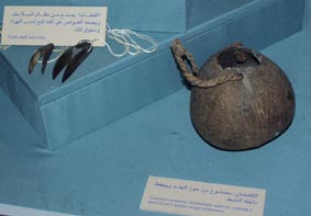 * coconut container used for soaking pearl diver's leather finger protectors真珠採りの潜水夫の