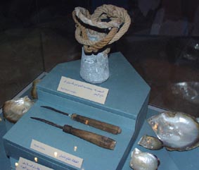 1. 真珠採取のジオラマof pearl diving: 真珠採りのダイバー。指先には革製のプロテクターをはめている。