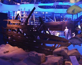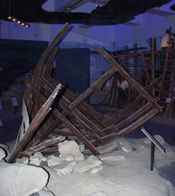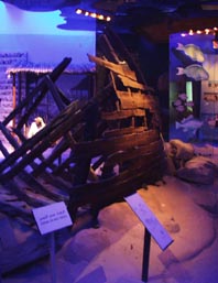 1. 木造船の沈船ジオラマ。[拡大画像(x11240.jpg)]