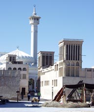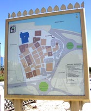 ![]() [拡大画像(x14386.jpg)][拡大画像(x14401.jpg)] バスタキア地区―Historic Bastakiyaの案内板。 左側がルーラーズ・コート(Ruler's Court)。Wall of Old DubaiはNo.8。 この歴史的地区を散策するのも興味深い。