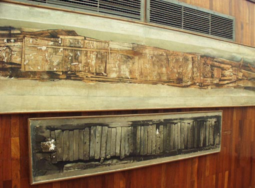 1. 船の部材-左:「wedge for fixing the prow」、右:「One of the stanchions supporting the deck」と