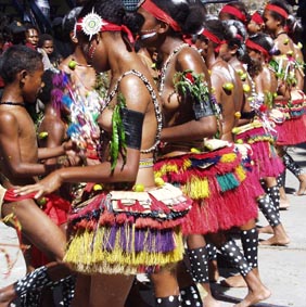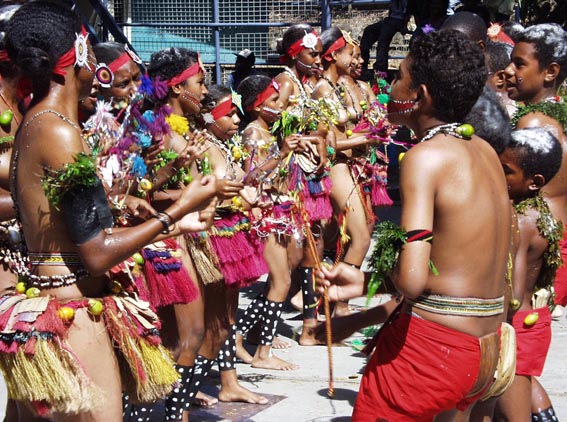 首都ポートモレスビーThe Ela Murray International School校内のフリーマーケットにおける、学校生徒による伝統的パプア・ニューギニア民族舞踊。 1 2![]() 1. [拡大画像(x5476.jpg)]