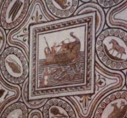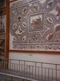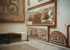 チュニジアのチュニス市内にある「バルドー国立博物館」には、古代ローマ時代の色彩タイルで描かれたモザイク画のコレクションが 数多く展示される。モザイク画の中には、当時の航海、漁撈、海の生物などを描いたものがある。 [1982.11の風景、チュニジア首都チュニス]