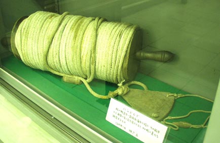 1. [画像(x6628.jpg)]ハンドログ: 船の航走中、一定時間海中に投じ、その船中から海面に走り出た長さにより、その船の速力