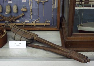 [画像(x6599.jpg)]東京水産大学水産調査練習船「雲鷹丸」が使用していた捕鯨用器具(手投げ銛など)