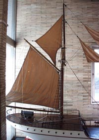 一艘旋きのイワシ旋網(巾着網)漁業の模型(伊東久助氏の設計・製作).