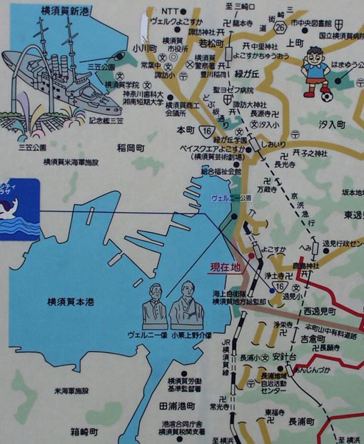 「海軍の碑」[拡大画像(x5296.jpg)]。JR横須賀線「よこすか」駅を下車、すぐ駅前に広がるヴェルニー公園内の片隅にある。 公園内をウォーターフロント・プロムナード沿いに行くと自然に行き着く。
