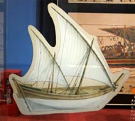 います。この三角帆は中世の地中海に伝えられ帆装に改革をもたらしました。1498年ヴァスコ・ダ・ガマが