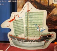 3.66メートル、船型:カラック、帆装:3檣(横帆、三角帆)。“サンタ・マリア”の要目は