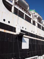 NYK "Hikawa Maru", ex-liner on the North America route to Seattle 日本郵船「氷川丸」は、横浜船渠(現・三菱重工業(株)横浜製作所)にて建造され、1930年(昭和5年)4月25日、北米西岸 シアトル航路に就航した。その当時の造船技術の粋を集めて建造された最新鋭の豪華貨客船であった。その厚い外板(thick shell plating)、がっちりとした水密区画(watertight compartments)など、より安全性の高い設計であった。 1960年(昭和35年)の引退までに、太平洋を254回横断し、約25,000人の乗客と多くの貨物を運んだ。戦時中は病院船として 約30,000人の傷病者を戦地から日本に運んだ。また、引き揚げ船としても活躍した。戦後はシアトル航路にも復帰した。その後、 1961年(昭和36年)5月、横浜・山下公園の桟橋に係留され、以来横浜港のシンボルとして市民に親しまれて来た。