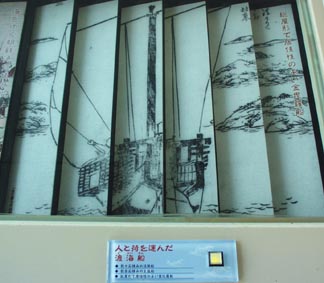 参勤交代の大名を乗せた御座船(ござぶね)、その他大小の和船などをパネルで紹介している。