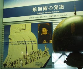 大航海時代以降、どのように航海術が発展してきたか? 大洋を航海する船乗りにとっての最大の関心の一つは、地球上における自船の正確な位置であり、 自船の進む方向であった。 それを知るためのさまざまな器具が発明された。 それは、星などの高度を測る器具であり、船脚を測る道具、経過時間を知るための時計であったりする。 方角を知る磁石、羅針盤はいうに及ばずである。 博物館では、多くの航海計器やその仕組み、発展の歴史を紹介する。