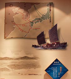 1 2 1. 古代の航路(5世紀頃)[拡大画像(x7604.jpg)] 2. 古代の航路(7~9世紀頃)、奈良時代の難波津(なにわづ)[拡大画像(x7605.jpg)]