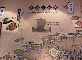 9 10 11 12 13 14 9. 江戸時代の主要な航路: 東廻り航路など [拡大画像(x7612.jpg)] 10. 江戸時代の航路と北前船の運んだニシンや海産物などの特産品 [拡大画像(x7613.jpg)] 11. 北前船 [拡大画像(x7614.jpg)] 12. 菱垣廻船 [拡大画像(x7615.jpg)] 13. 北前船: 西廻り航路[拡大画像(x7616.jpg)] 14. 菱垣廻船: 上方-江戸間航路 [拡大画像(x7617.jpg)]