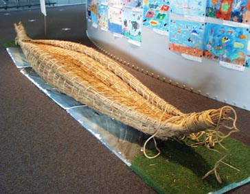 葦船[画像(x7937.jpg)][画像(x7938.jpg): 船模型で掲示要。または「葦舟」ジャンルにて]博物館の 「親子葦船ワークショップ」で製作(2003.07)された「でんでん虫号」
