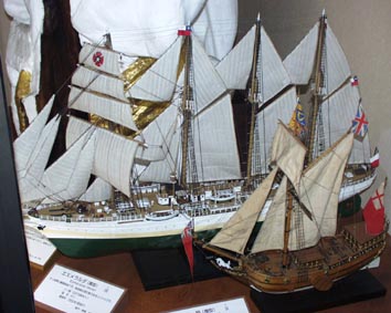 6. 唐船(福州船)Kara-bune(Fukushu-sen)、中国南部で用いられた帆船。 [画像(x8733.jpg)][画像(x8734.jpg)]