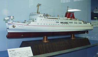 1 2 3 1. 「高千穂丸」(たかちほまるTakachiho Maru) [画像(x8493.jpg)][画像(x8494.jpg)][画像(x8515.jpg)] 自動車ごと運べる船(カーフェリー)も、短い区間から長距離航路へと発展。これは1万トン級の大型カーフェリー。 9552総トン。1974年。日本カーフェリー寄贈。カーフェリー:自動車ごと乗客や貨物を運ぶ。はじめは小型船による 短い区間での輸送であったが、今では首都圏と北海道・九州を結ぶような長距離ルートもある。 船首部: [画像(x8495.jpg)][画像(x8496.jpg)][画像(x8497.jpg)][画像(x8498.jpg)][画像(x8499.jpg)]