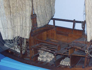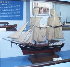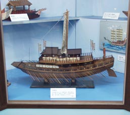 4 5 4. 千石船内部 [画像(x8602.jpg)][画像(x8603.jpg)][画像(x8604.jpg)] 5. 「日本丸」 [画像(x8605.jpg)][画像(x8606.jpg)] 海外貿易に熱心であった豊臣秀吉が鳥羽の領主に命じて造らせた軍船です。 当時としては特別な大型船で、100丁の櫂と1枚の帆をもつ。
