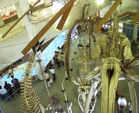 1. [拡大画像(x8097.jpg)][拡大画像(x8098.jpg)]1階展示コーナー、鯨の骨格標本など。