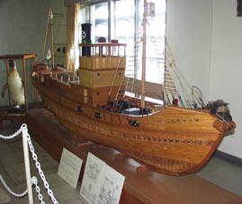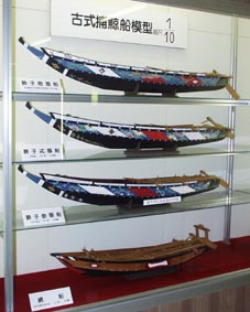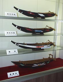 3. [拡大画像(x8103.jpg)]古式捕鯨船模型。勢子壱番船、弐番船…