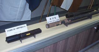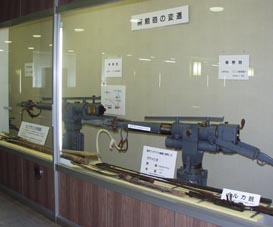 3. [拡大画像(x8116.jpg)]「捕鯨砲の変遷」 [拡大画像(x8117.jpg): ミンク鯨捕獲用単砲]+[拡大画像(x8118.jpg):