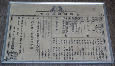 1. 「第十一京丸」の船舶国籍証書 [拡大画像(x8898.jpg)][拡大画像(x8897.jpg): 「第十一京丸」の要目]>